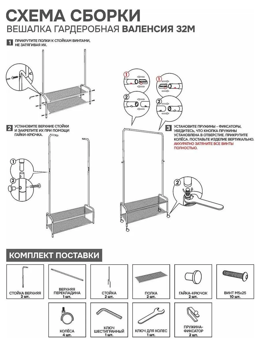 Описание товара Вешалка гардеробная Валенсия 32М 2 полки, на колёсах, белый, ВГВ32М Б