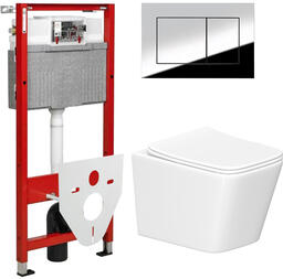 Унитаз подвесной с инсталляцией Lauter Square 214903 + TECE Kit 9400412 с кнопкой (хром)