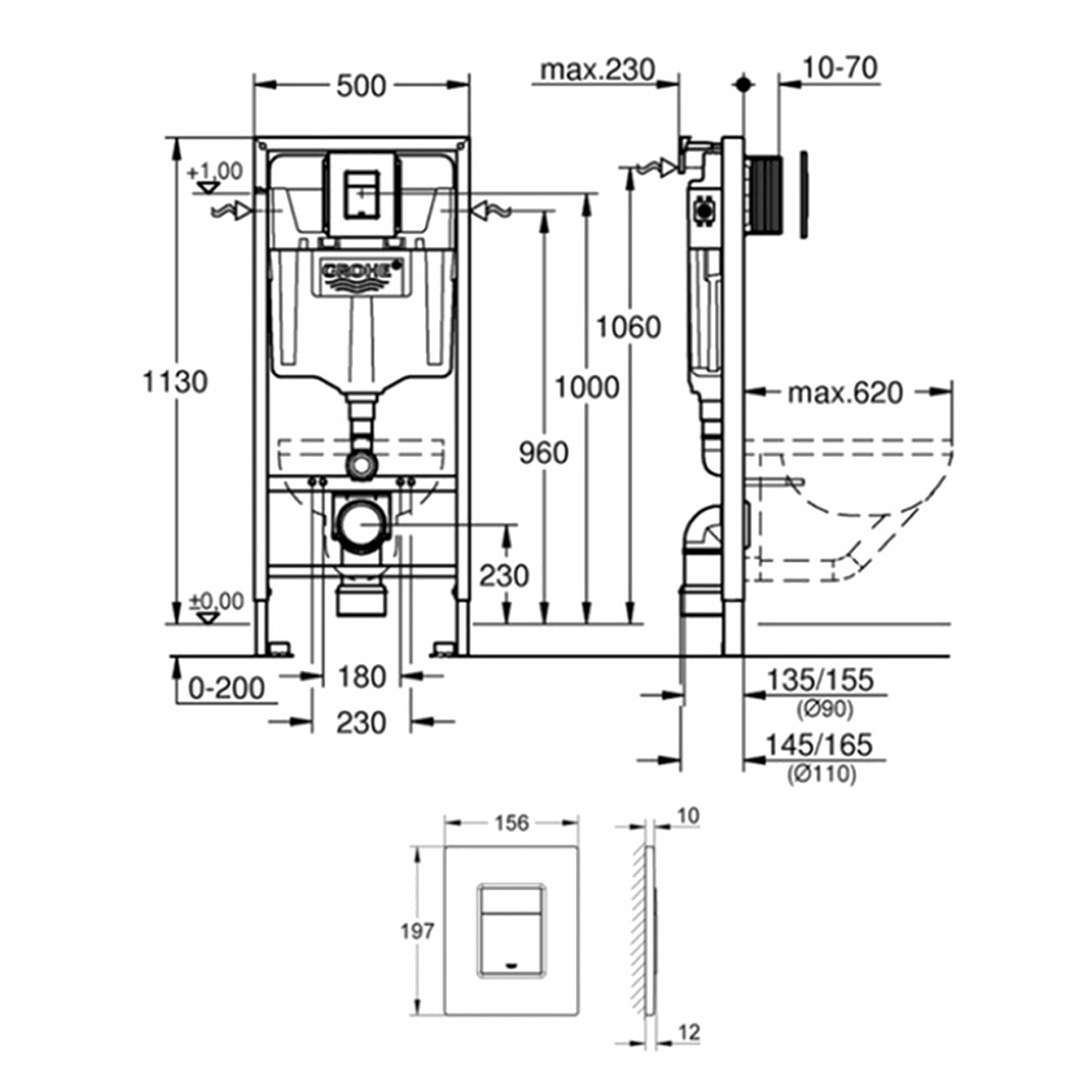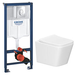 Унитаз подвесной с инсталляцией Lauter Square 214903 + GROHE Rapid SL 38721001 (овальная, хром)