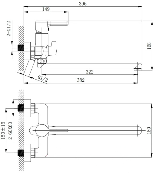 - Количество монтажных отверстий 2 (расстояние между отверстиями: 150 мм)