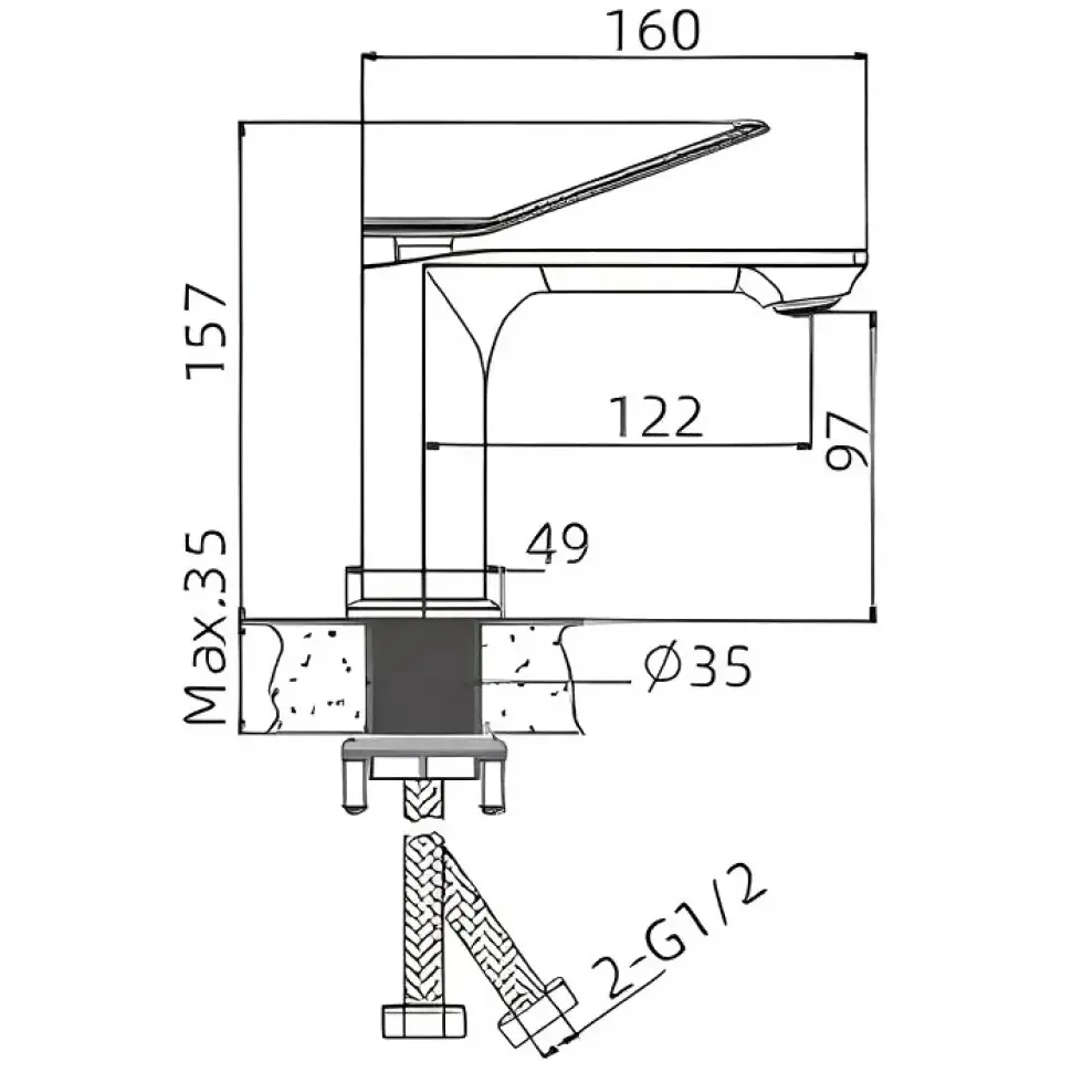 - Высота смесителя 157 мм