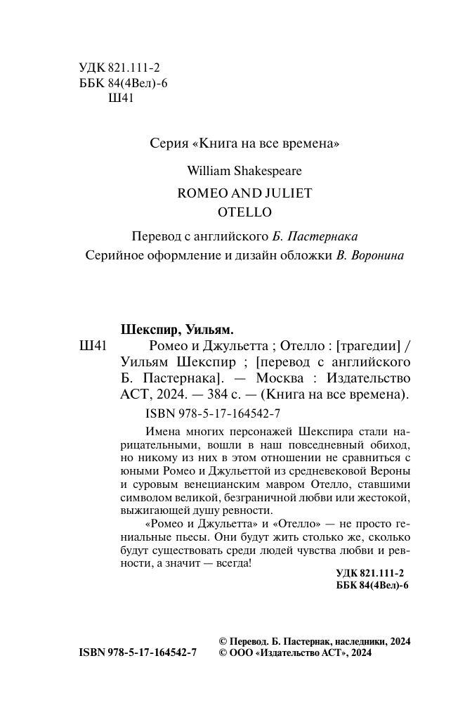 Книга АСТ Ромео и Джульетта. Отелло, мягкая обложка (Шекспир Уильям)