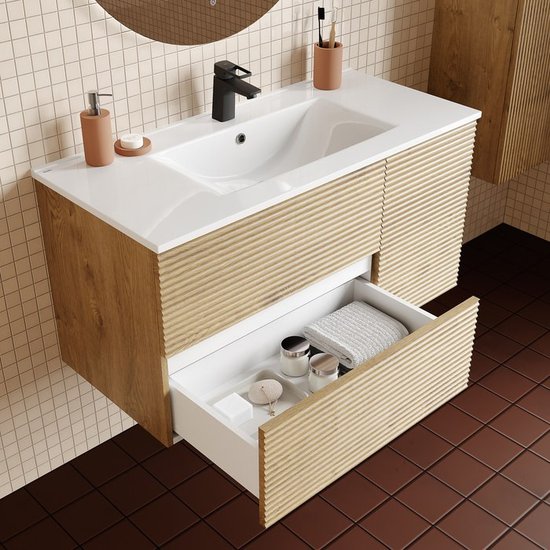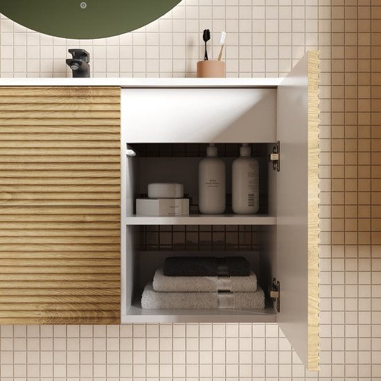✅ Вместительная подвесная тумба для ванной комнаты Bild станет отличным решением для вашего интерьера. Она сочетает в себе стильный дизайн с горизонтальной фрезеровкой и практичность, что делает её идеальной для хранения ванных принадлежностей.✅ Изготовленная из МДФ с ПВХ-пленкой, эта тумба устойчива к высокой влажности, что гарантирует долговечность и сохранение первоначального вида при правильном уходе. Боковины также выполнены из МДФ, что обеспечивает надежность конструкции.✅ Тумба оснащена двумя выдвижными ящиками с направляющими скрытого монтажа и доводчиком Hettich, а также полками с распашной дверкой. Механизм открытия Push-to-Open позволяет легко открывать ящики одним нажатием на фасад, что добавляет удобства в использовании.⚠️ Эта подвесная тумба идеально подходит для гигиенических и хозяйственных нужд, обеспечивая порядок и стиль в вашей ванной комнате.✅ Вместительная подвесная тумба для ванной комнаты Bild станет отличным решением для вашего интерьера. Она сочетает в себе стильный дизайн с горизонтальной фрезеровкой и практичность, что делает её идеальной для хранения ванных принадлежностей.✅ Изготовленная из МДФ с ПВХ-пленкой, эта тумба устойчива к высокой влажности, что гарантирует долговечность и сохранение первоначального вида при правильном уходе. Боковины также выполнены из МДФ, что обеспечивает надежность конструкции.✅ Тумба оснащена двумя выдвижными ящиками с направляющими скрытого монтажа и доводчиком Hettich, а также полками с распашной дверкой. Механизм открытия Push-to-Open позволяет легко открывать ящики одним нажатием на фасад, что добавляет удобства в использовании.⚠️ Эта подвесная тумба идеально подходит для гигиенических и хозяйственных нужд, обеспечивая порядок и стиль в вашей ванной комнате.