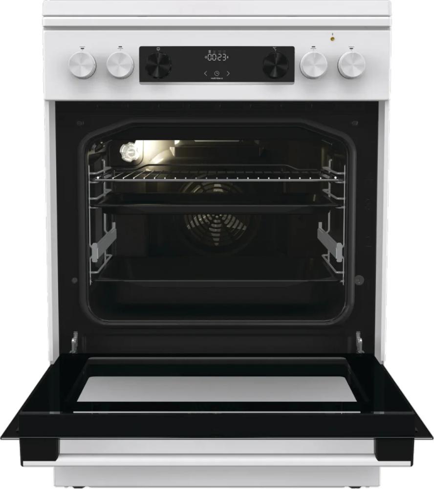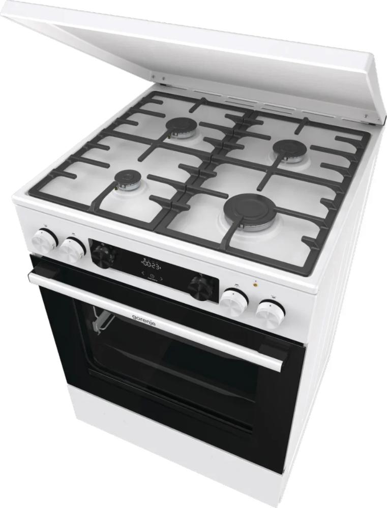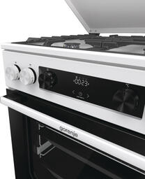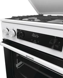 Комбинированная плита Gorenje GKS6C71WF — отличный выбор как для квартиры, так и для частного дома. Цвет корпуса белый, он гармонично сочетается с мебелью и техникой похожих оттенков, а также может интересно выглядеть на контрасте с ними. Для управления используется удобная и понятная электронная система. Благодаря ей выбирать режимы приготовления и настраивать параметры температуры очень просто. Основная информация о процессе отображается на дисплее. Переключатели не только выполняют техническую функцию, но и поддерживают общий дизайн; тип элементов: сенсорные + поворотные.