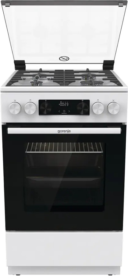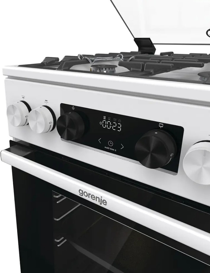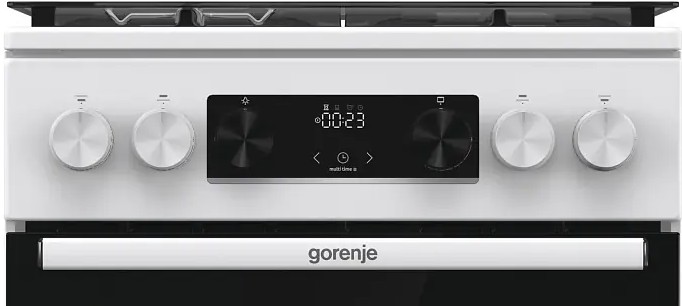 Газовая плита Gorenje GGI5C23WF — отличный выбор как для квартиры, так и для частного дома. Цвет корпуса белый, он гармонично сочетается с мебелью и техникой похожих оттенков, а также может интересно выглядеть на контрасте с ними. Для управления используется удобная и понятная электронная система. Благодаря ей выбирать режимы приготовления и настраивать параметры температуры очень просто. Основная информация о процессе отображается на дисплее. Переключатели не только выполняют техническую функцию, но и поддерживают общий дизайн; тип элементов: сенсорные + поворотные.