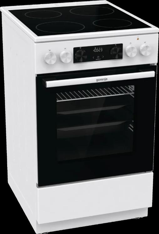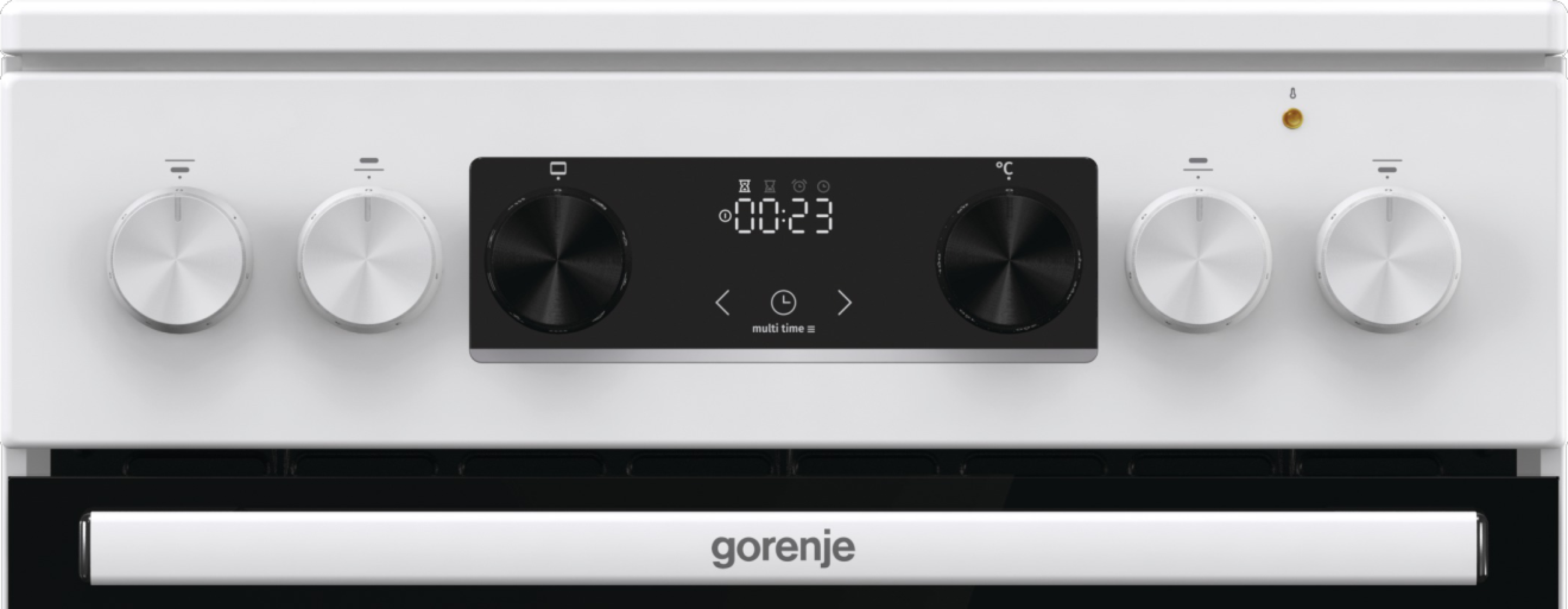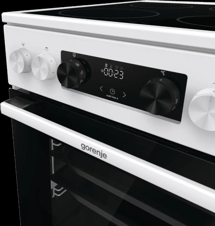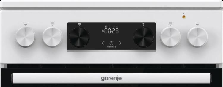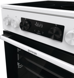 Электрическая плита Gorenje GEC5C42WG — отличный выбор как для квартиры, так и для частного дома. Цвет корпуса белый, он гармонично сочетается с мебелью и техникой похожих оттенков, а также может интересно выглядеть на контрасте с ними. Для управления используется удобная и понятная электронная система. Благодаря ей выбирать режимы приготовления и настраивать параметры температуры очень просто. Основная информация о процессе отображается на дисплее. Переключатели не только выполняют техническую функцию, но и поддерживают общий дизайн; тип элементов: сенсорные + поворотные.