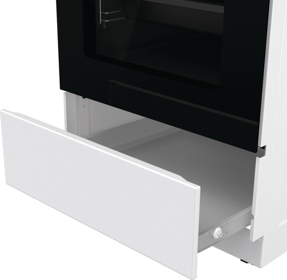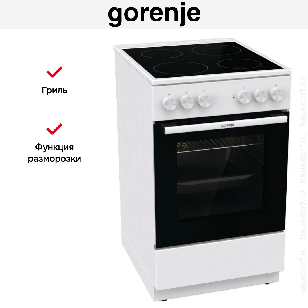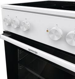 Электрическая плита Gorenje GEC5A61WG — отличный выбор как для квартиры, так и для частного дома. Цвет корпуса белый, он гармонично сочетается с мебелью и техникой похожих оттенков, а также может интересно выглядеть на контрасте с ними. Для управления используется удобная и понятная механическая система. Благодаря ей выбирать режимы приготовления и настраивать параметры температуры очень просто. Переключатели не только выполняют техническую функцию, но и поддерживают общий дизайн; тип элементов: поворотные.