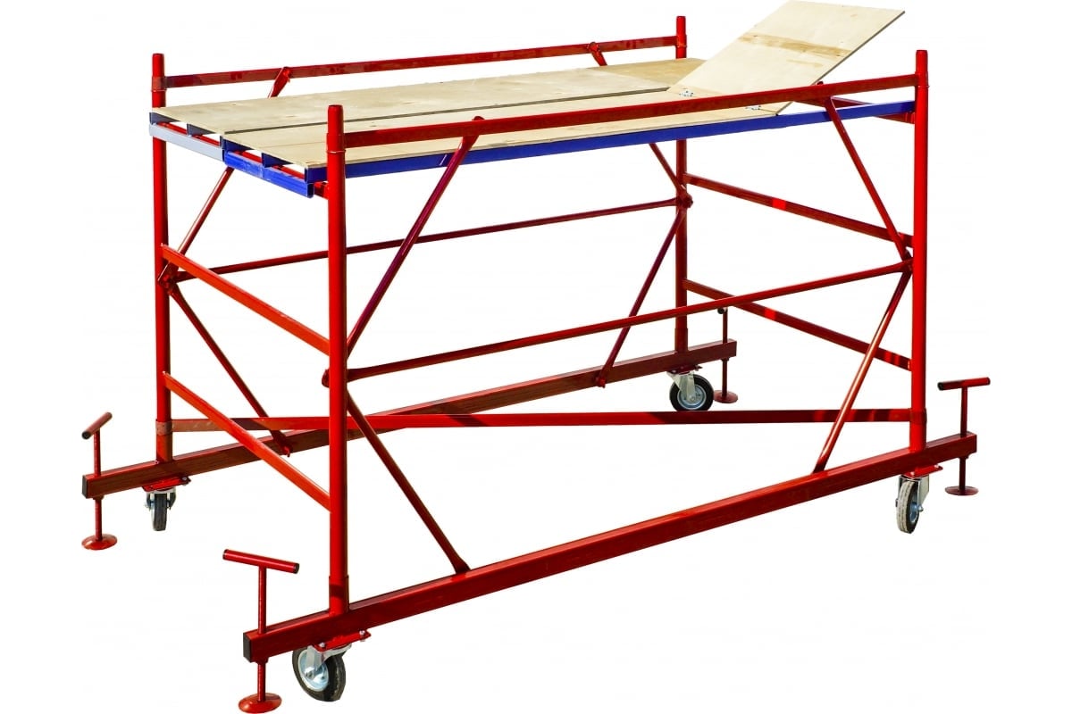 Базовый блок Gigant 1,2x2м GTT-003 - основной элемент вышки. Он включает в себя винтовые опоры для фиксации вышки, а также колеса для простоты перемещения.