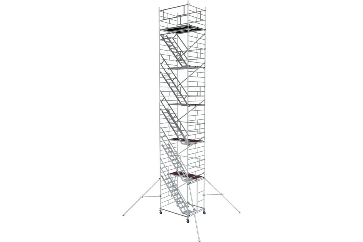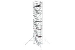 Модульная алюминиевая вышка MEGAL ВМА 1400Л/12 101462 обеспечивает подъем и организацию рабочего места на высоте с использованием лестничных маршей в строительно-монтажных, ремонтных и прочих работах.