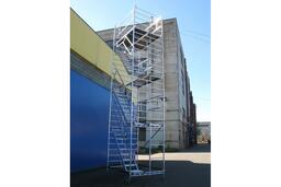 Вышка собирается из вертикальных рам. Рамы стыкуются между собой и фиксируются крепежными скобами. Площадки соединяются наклонными лестничными маршами с рифлеными широкими ступенями. Каждый марш оснащен перилами ограждениями. Используются диагональные и горизонтальные связи (стяжки).