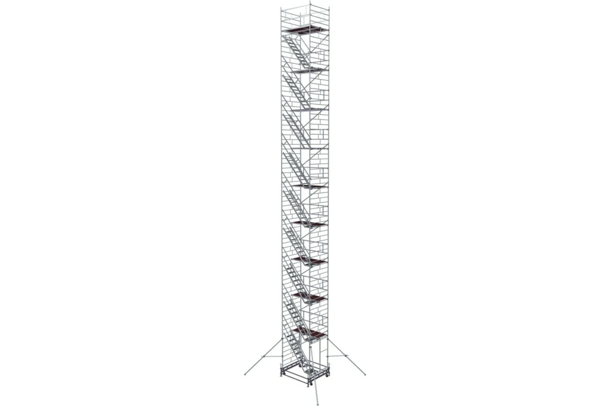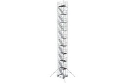 Вышка собирается из вертикальных рам. Рамы стыкуются между собой и фиксируются крепежными скобами. Вышка обеспечивает комфортный подъем с инструментом или иным грузом по наклонным лестничным маршам с удобными ступенями из рифленого профиля. Используются диагональные и горизонтальные связи (стяжки).