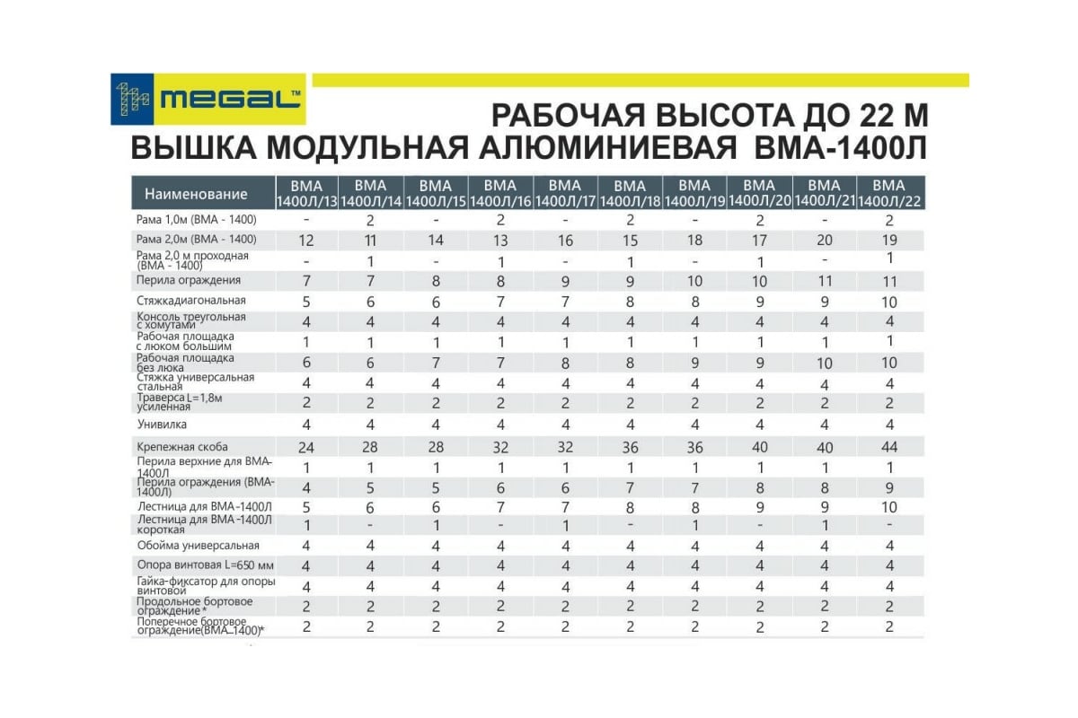 Модульная алюминиевая вышка MEGAL ВМА 1400Л/20 101470
