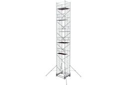 Модульная алюминиевая вышка MEGAL ВМА 1400/14 101414 обеспечивает подъем и организацию рабочего места на высоте с использованием лестничных маршей в строительно-монтажных, ремонтных и прочих работах.