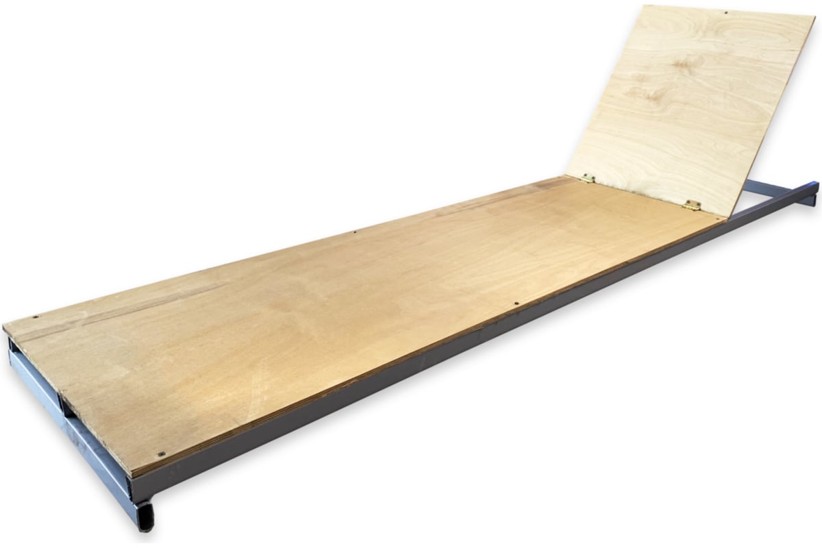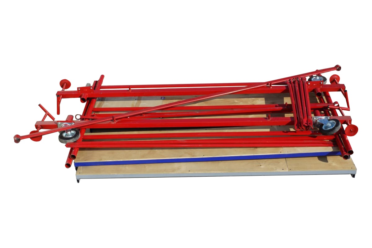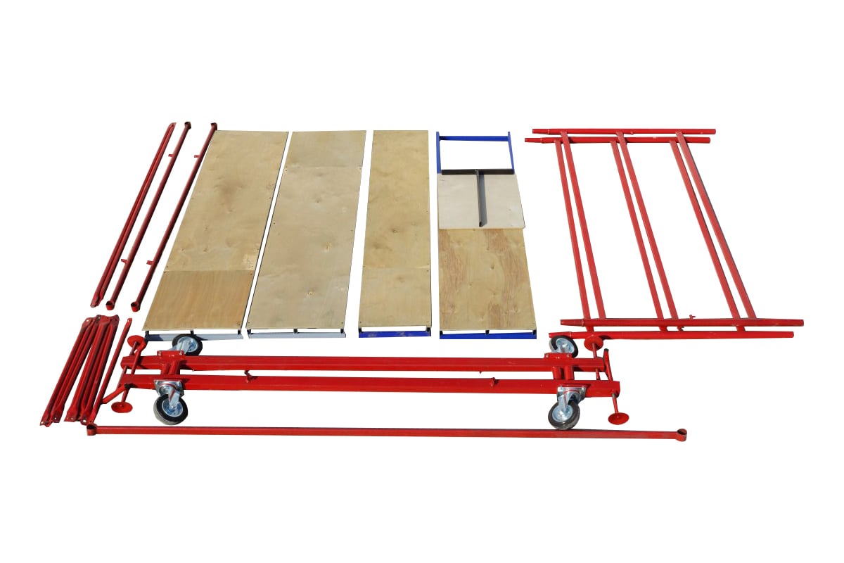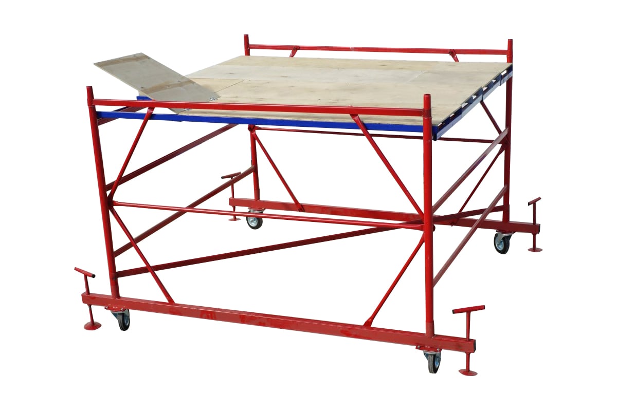 Рабочая площадка изготовлена из прочной фанеры толщиной 10 мм и состоит из четырех независимых частей, одна из которых оборудована люком для безопасного перемещения. Длина и ширина рабочей площадки составляют 2.0 метра каждая.