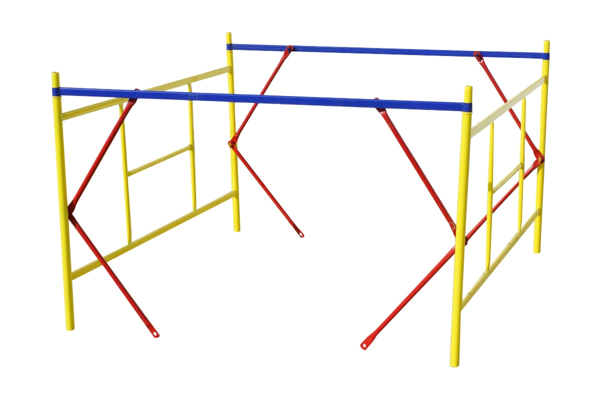 Вышка-тура оснащена диагональными металлическими стяжками, которые обеспечивают дополнительную устойчивость при резких порывах ветра