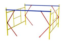 Вышка-тура оснащена диагональными металлическими стяжками, которые обеспечивают дополнительную устойчивость при резких порывах ветра.