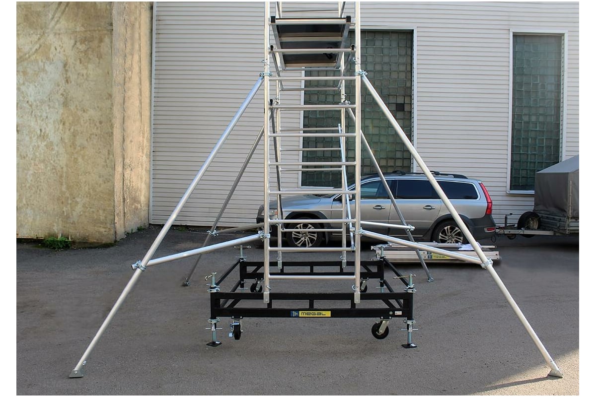 Модульная алюминиевая вышка MEGAL ВМА 700/16 100716 служит для подъема и организации рабочего места на высоте при выполнении строительно-монтажных, ремонтных и прочих работ.
