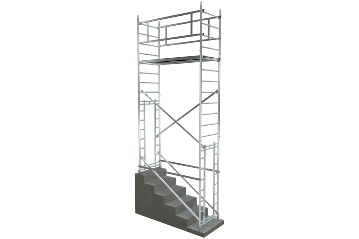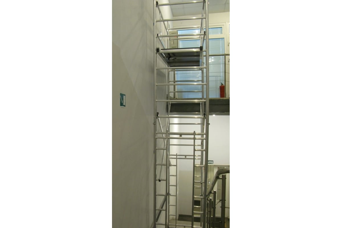 Модульная алюминиевая вышка MEGAL ВМА 700П/5 100755 служит для подъема и организации рабочего места на высоте при работах в ограниченном пространстве (на лестничных маршах, эскалаторах).