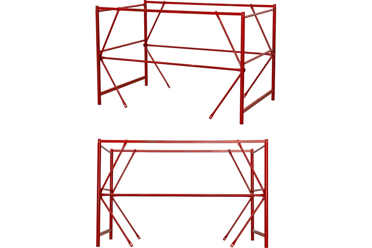 Вышка-тура может быть доращена по высоте дополнительными секциями до 7 метров. Секции вышки снабжены диагональными металлическими стяжками, которые обеспечивают дополнительную устойчивость при резких порывах ветра.