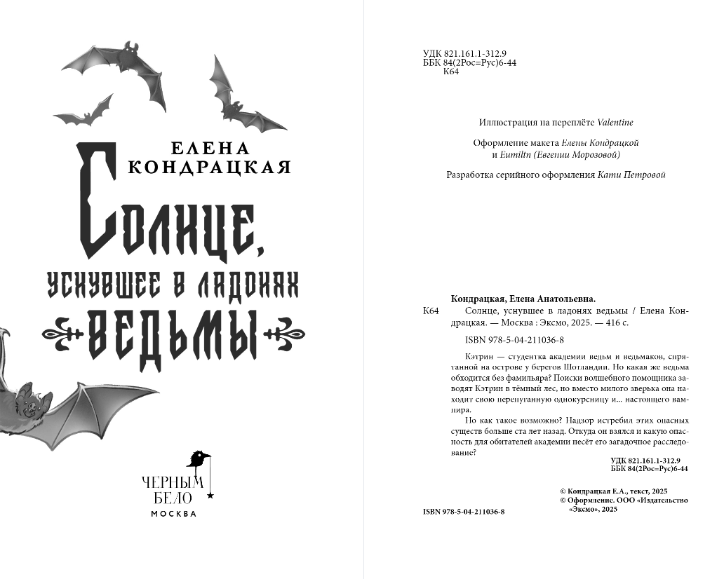 Книга Черным-бело Солнце, уснувшее в ладонях ведьмы, твердая обложка (Кондрацкая Елена)