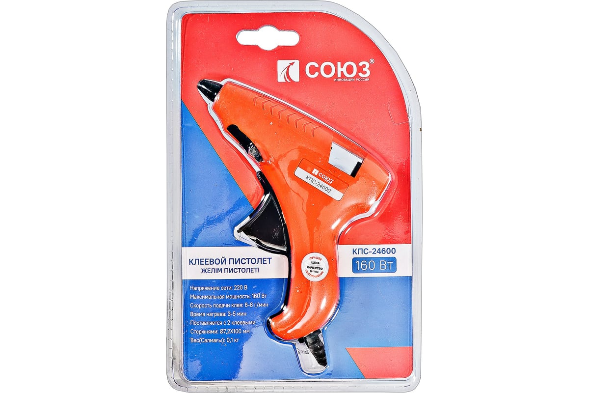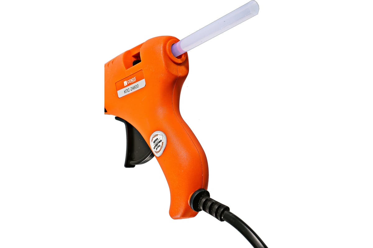Клеевой пистолет СОЮЗ КПС-24600 используется для быстрого склеивания материалов - пластика, дерева, керамики и др. Его корпус выполнен из термостойкой пластмассы, что гарантирует более надежную и безопасную работу. Встроенная откидная опорная скоба позволяет принять пистолету устойчивое положение во время перерывов. Рукоятка инструмента удобно лежит в руке, обеспечивая крепкий захват.