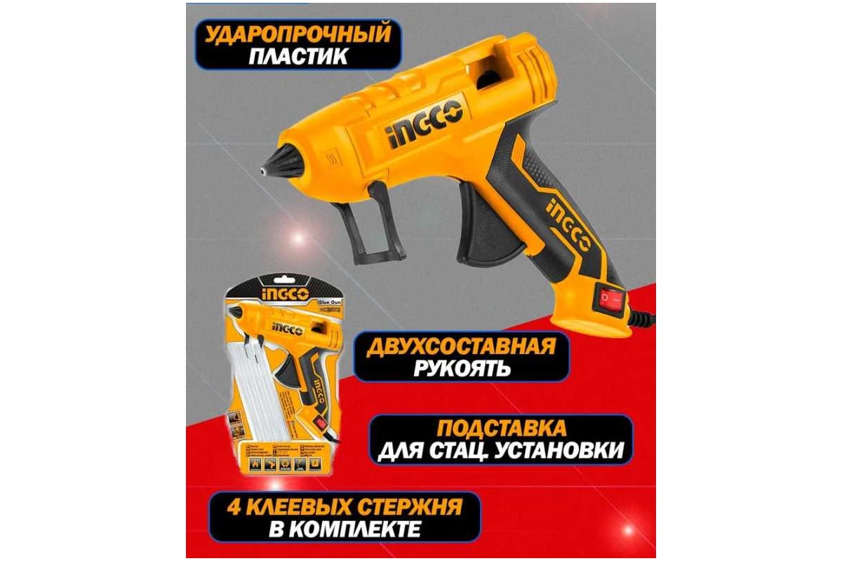 Клеевой пистолет INGCO 150 Вт GG258 служит для склеивания заготовок из дерева, картона, бумаги. Подходит для ремонта, герметизации и расшивки.