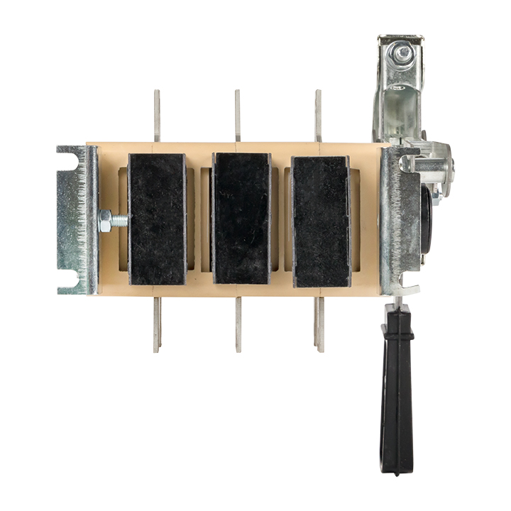 В конструкции применена трехполюсная контактная система ножевого типа с двойным видимым разрывом цепи. С помощью двойного разрыва цепи, больших растворов контактов и дугогасительных камер обеспечивается эффективное гашение электрической дуги при коммутации нагрузок, что препятствует преждевременному и чрезмерному износу контактов.