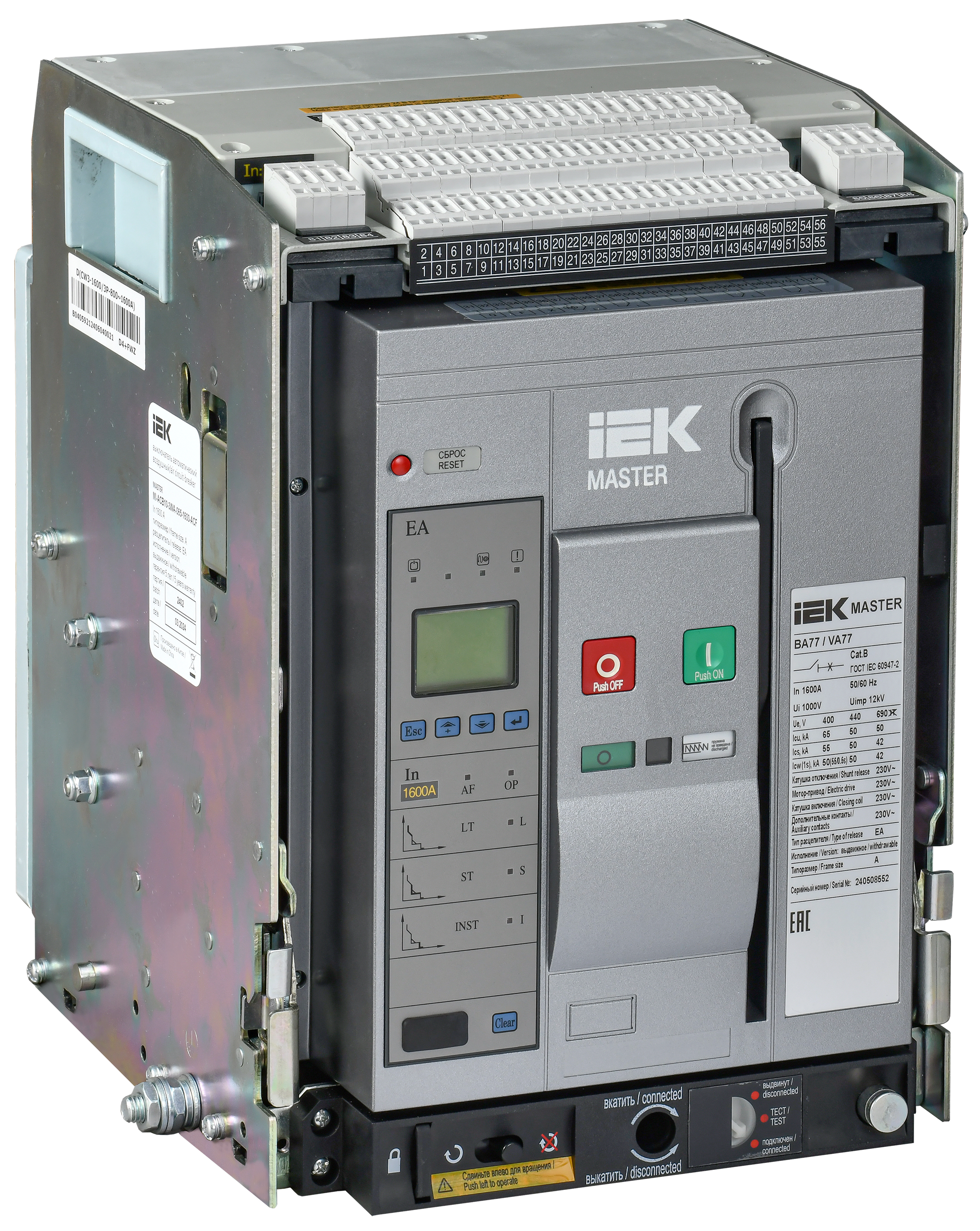 Воздушные автоматические выключатели серии MASTER IEK предназначены для защиты сетей низкого напряжения от коротких замыканий и перегрузок. Автоматические выключатели данной серии обладают оптимальным набором функций, для применения их на объектах жилищного, социального, коммерческого и дорожного строительства, а также энергетики и сельского хозяйства. Воздушные автоматические выключатели серии MASTER IEK поставляются укомплектованными набором аксессуаров для их полноценного применения в состав НКУ: мотор привод 230В, реле включения и отключения (с удержанием) 230В, контакт положения в корзине, набор из 4х перекидных контактов, аварийный контакт. В комплект автоматического выключателя также входит электронный контроллер и, в случае выдвижного исполнения база выдвижного исполнения.