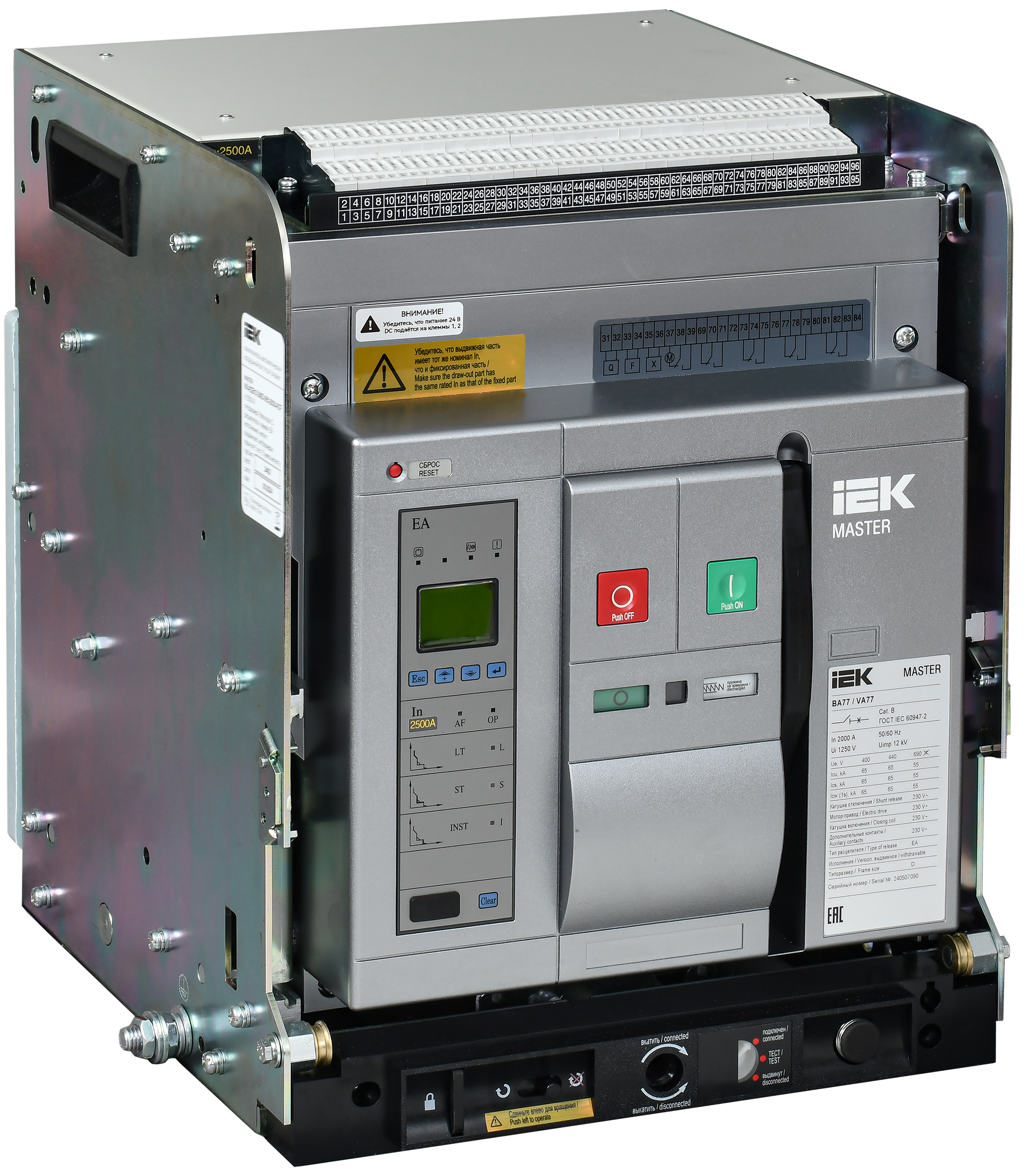 Воздушные автоматические выключатели серии MASTER IEK предназначены для защиты сетей низкого напряжения от коротких замыканий и перегрузок. Автоматические выключатели данной серии обладают оптимальным набором функций, для применения их на объектах жилищного, социального, коммерческого и дорожного строительства, а также энергетики и сельского хозяйства. Воздушные автоматические выключатели серии MASTER IEK поставляются укомплектованными набором аксессуаров для их полноценного применения в состав НКУ: мотор привод 230В, реле включения и отключения (с удержанием) 230В, контакт положения в корзине, набор из 4х перекидных контактов, аварийный контакт. В комплект автоматического выключателя также входит электронный контроллер и, в случае выдвижного исполнения база выдвижного исполнения.