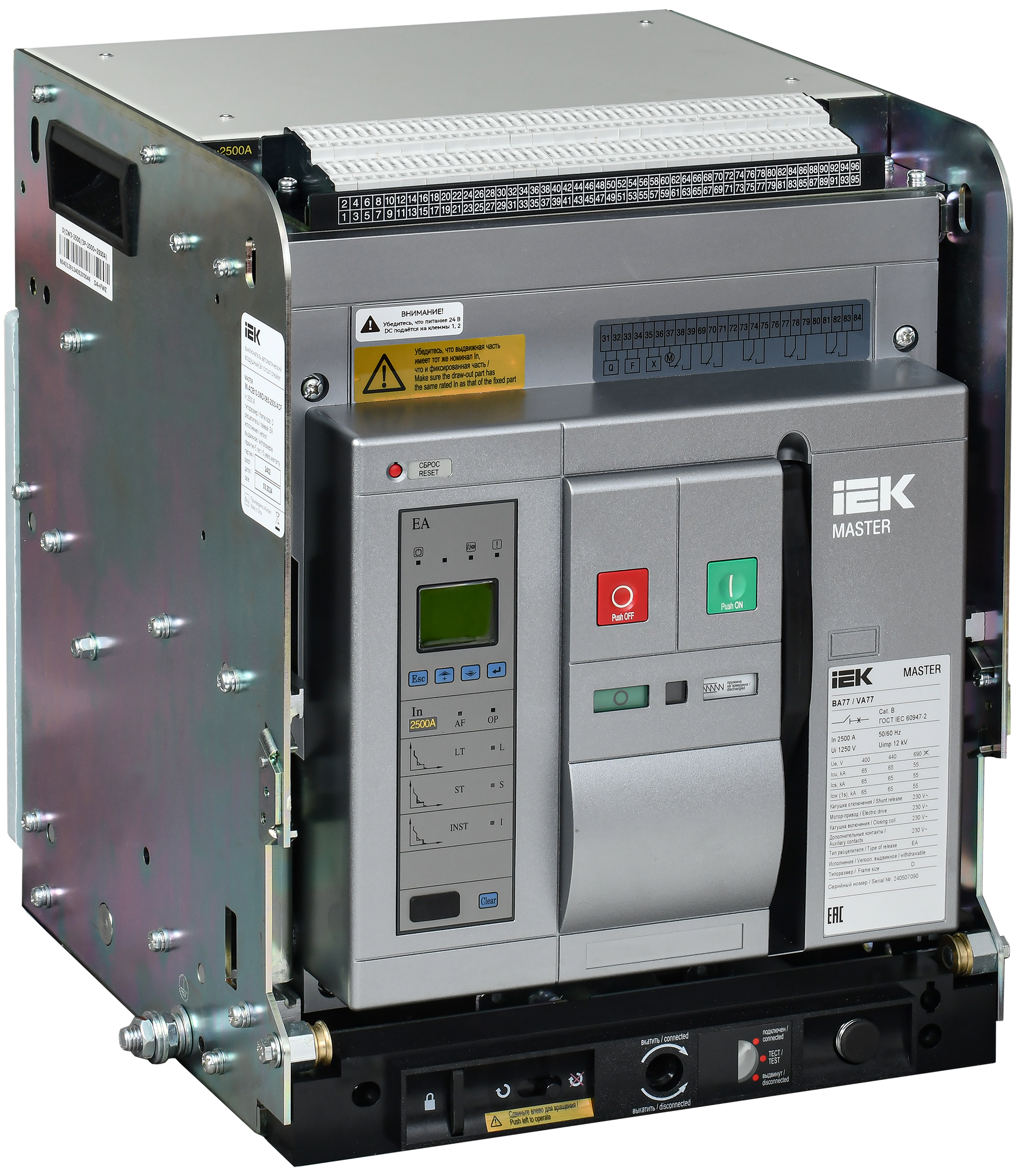 Воздушные автоматические выключатели серии MASTER IEK предназначены для защиты сетей низкого напряжения от коротких замыканий и перегрузок. Автоматические выключатели данной серии обладают оптимальным набором функций, для применения их на объектах жилищного, социального, коммерческого и дорожного строительства, а также энергетики и сельского хозяйства. Воздушные автоматические выключатели серии MASTER IEK поставляются укомплектованными набором аксессуаров для их полноценного применения в состав НКУ: мотор привод 230В, реле включения и отключения (с удержанием) 230В, контакт положения в корзине, набор из 4х перекидных контактов, аварийный контакт. В комплект автоматического выключателя также входит электронный контроллер и, в случае выдвижного исполнения база выдвижного исполнения.
