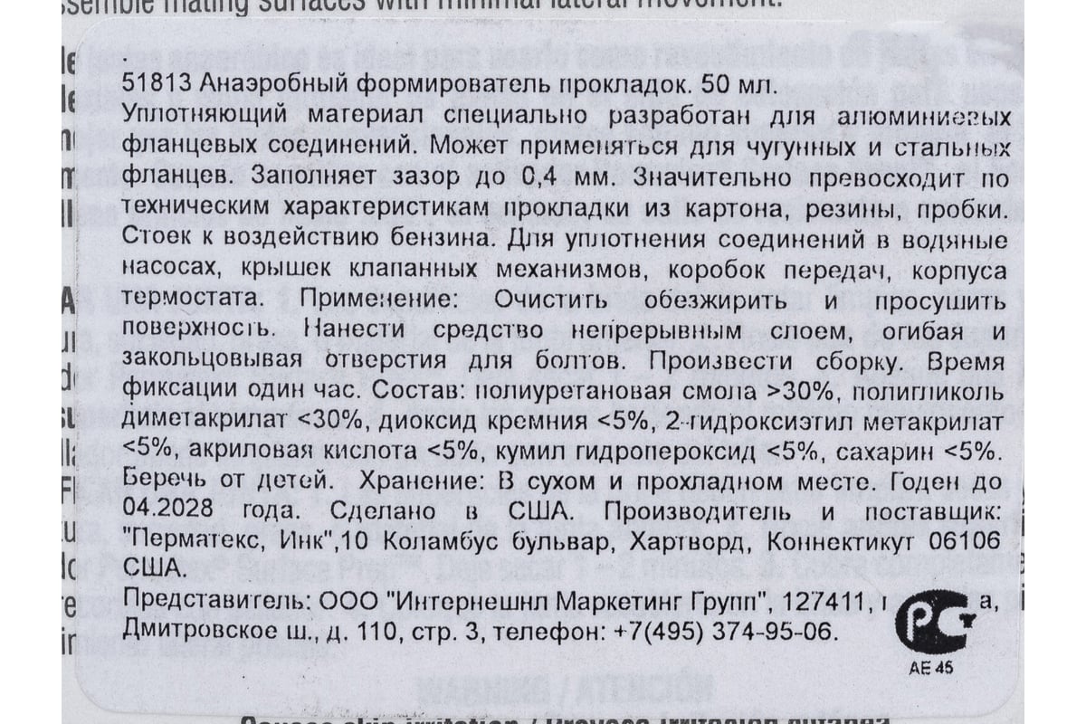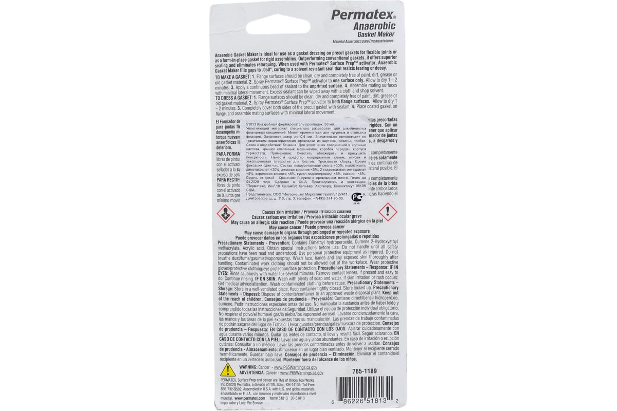 Анаэробный формирователь прокладок PERMATEX тюбик 50мл 51813 предназначен для алюминиевых фланцевых соединений.