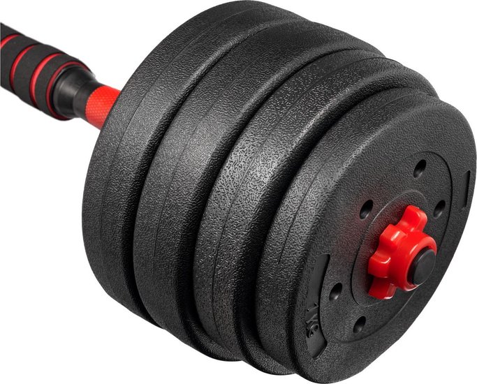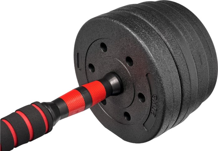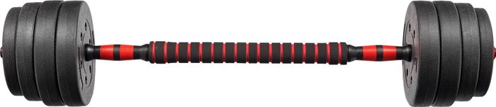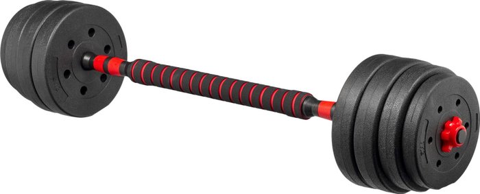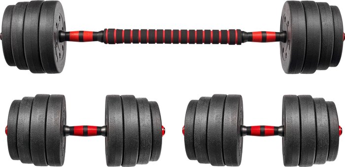 КомплектацияДиск 1кг - 4шт; Диск 1,25кг - 4шт; Диск 1,5кг - 4шт; Диск 2кг - 4шт; Фиксатор - 4шт; Гриф – 2шт; Переходник - 1шт.