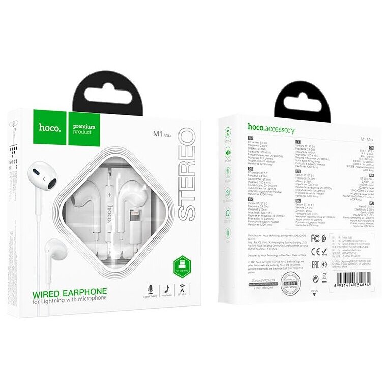 Наушники HOCO M1 Max crystal earphones with mic for Lightning (белый)