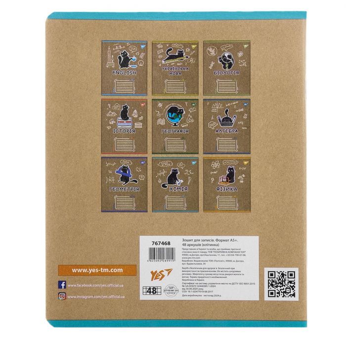 - Модель предметний ХІМІЯ Black cat 48 аркушів, клітинка