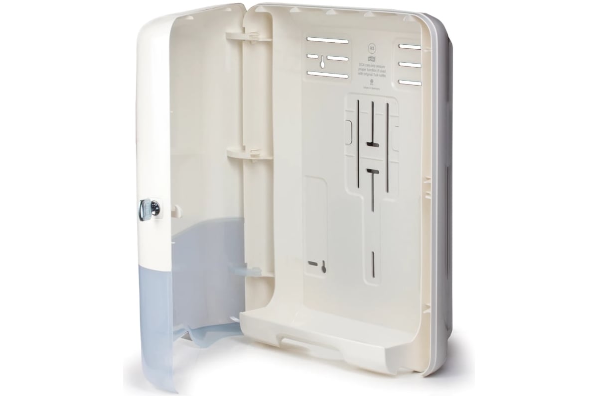 Диспенсер для полотенец TORK Elevation ZZ белый 553000 600283 удобен в эксплуатации и не требует сложного обслуживания. Изделие выполнено из ударопрочного пластика ABS и оснащено замком с функцией автоматического захлопывания. Модель подходит для туалетных комнат с большой проходимостью.