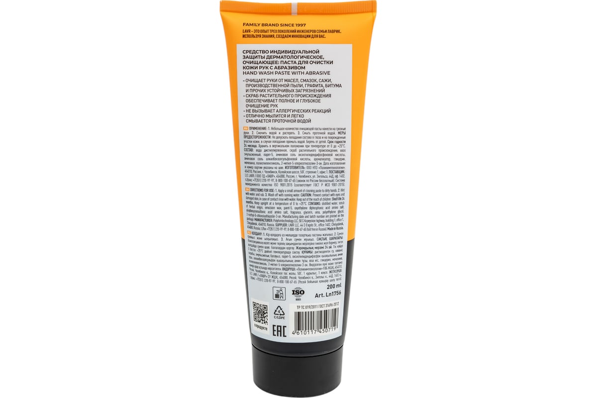 Очищающая паста для рук с натуральным абразивом LAVR 200 мл Ln1756