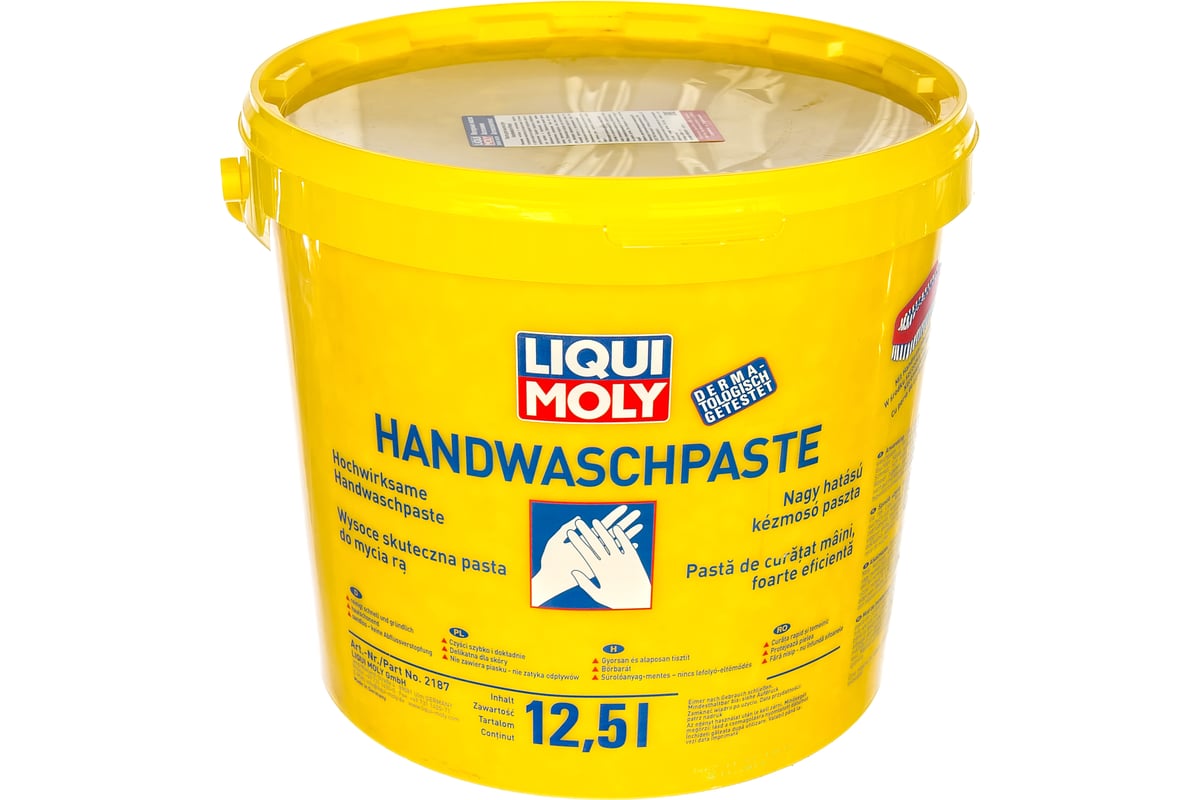 Паста Handwasch-Paste LIQUI MOLY 2187 обеспечивает качественную, безопасную и экономичную очистку кожи рук от разнообразных, даже самых трудноудаляемых загрязнений, например: масла, жиры, смолы, битумы, печатные краски пр. Паста протестирована и одобрена к применению дерматологами. В качестве абразива содержит натуральную лимонную цедру. Её наносят на руки и тщательно оттирают загрязнения в течение некоторого времени, затем смывают большим количеством воды. После применения оставляет приятное ощущение на коже.