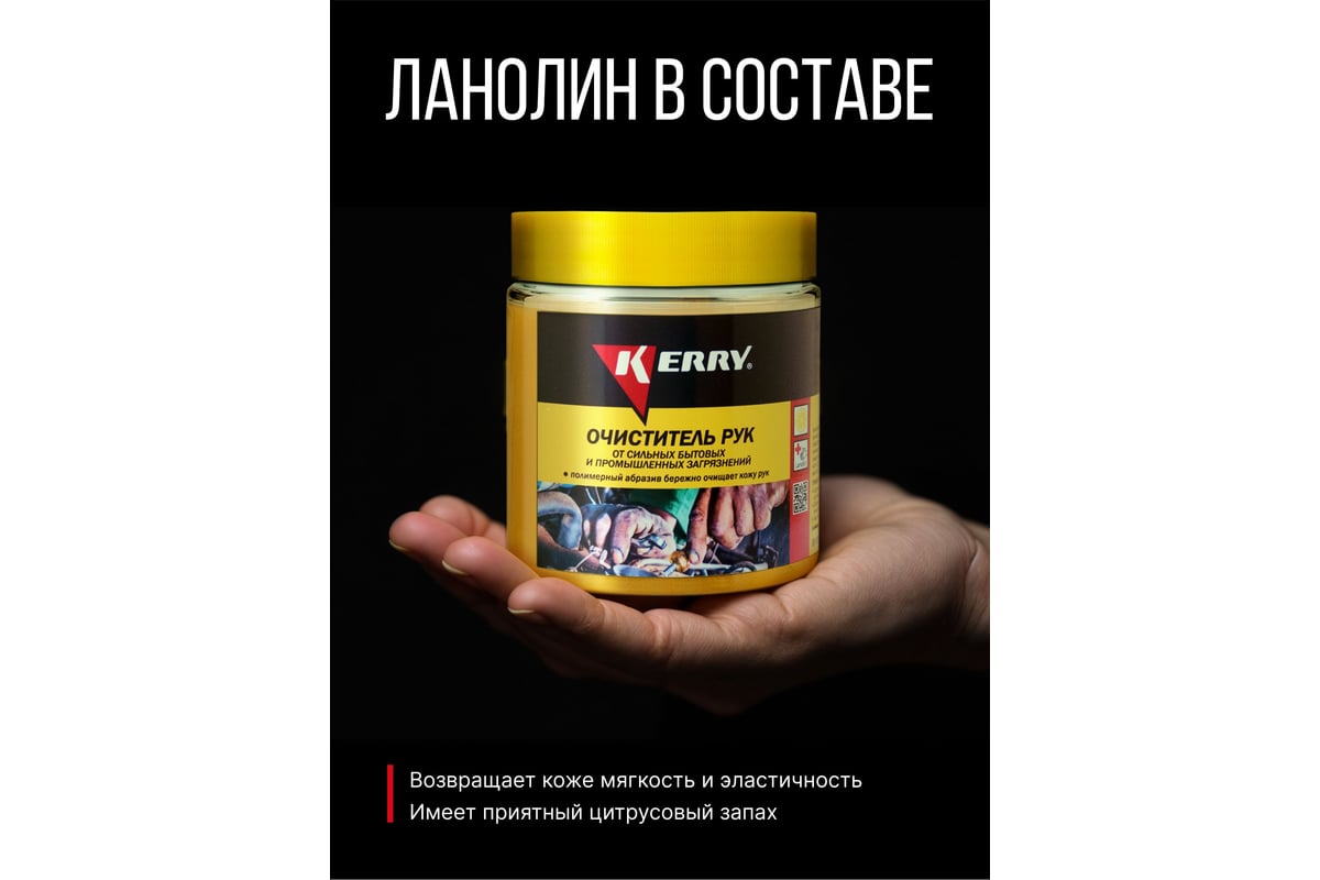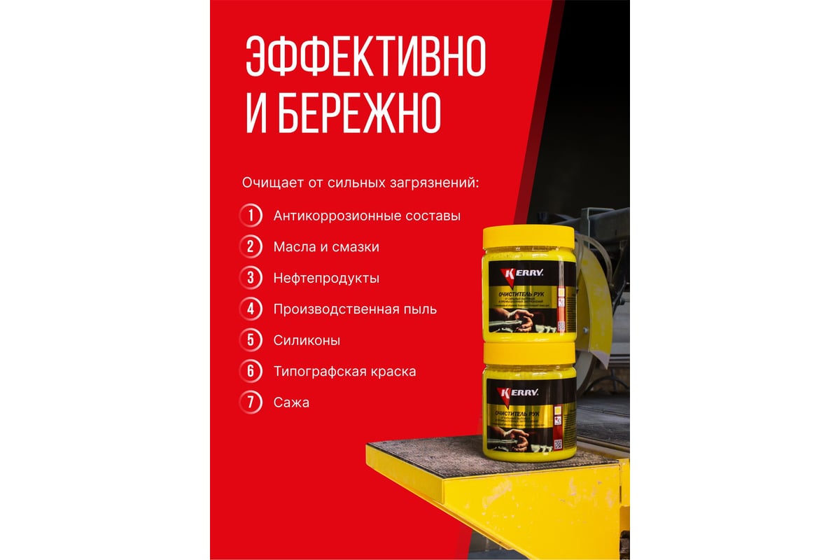 Очищающая паста KERRY 460мл 11604710 хорошо очищает руки от масла, смазки, нефтепродуктов, силикона, сажи, типографской краски, производственной пыли и т.д.