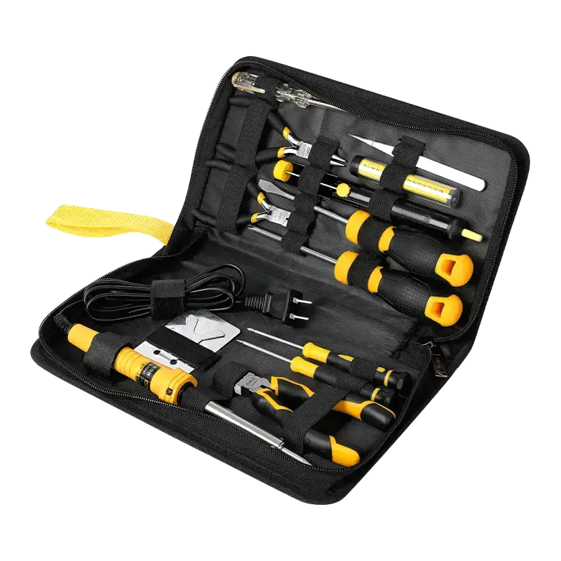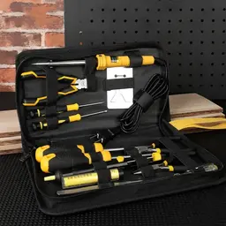 - Инструменты в наборе плоскогубцы (2 шт.), отвертка (5 шт.), паяльник (1 шт.), ножницы (1 шт.)