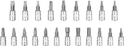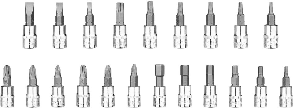 • Головки со вставкой шлицевые (SL) (4, 5.5, 7), крестовые (PH) (1, 2, 3), звездочкой (Torx) (10, 15, 20, 25, 30, 40), шестигранные (Hex) (3, 4, 5, 6, 7, 8), крестовые с насечками (PZ) (1, 2, 3)