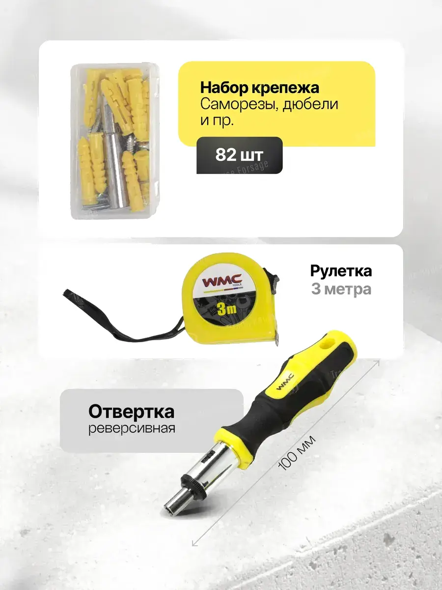 • Доп. комплектация рулетка (3 м), уровень (230 мм), кейс