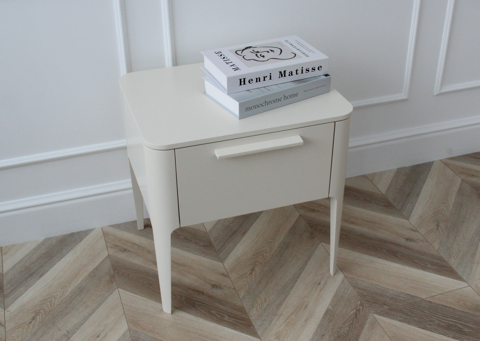 Высота: 50 см Ширина: 50 см Глубина: 41 см Покрытие эмаль, NCS S 0804-Y30R Материал: дуб, МДФ, внутри ЛДСП