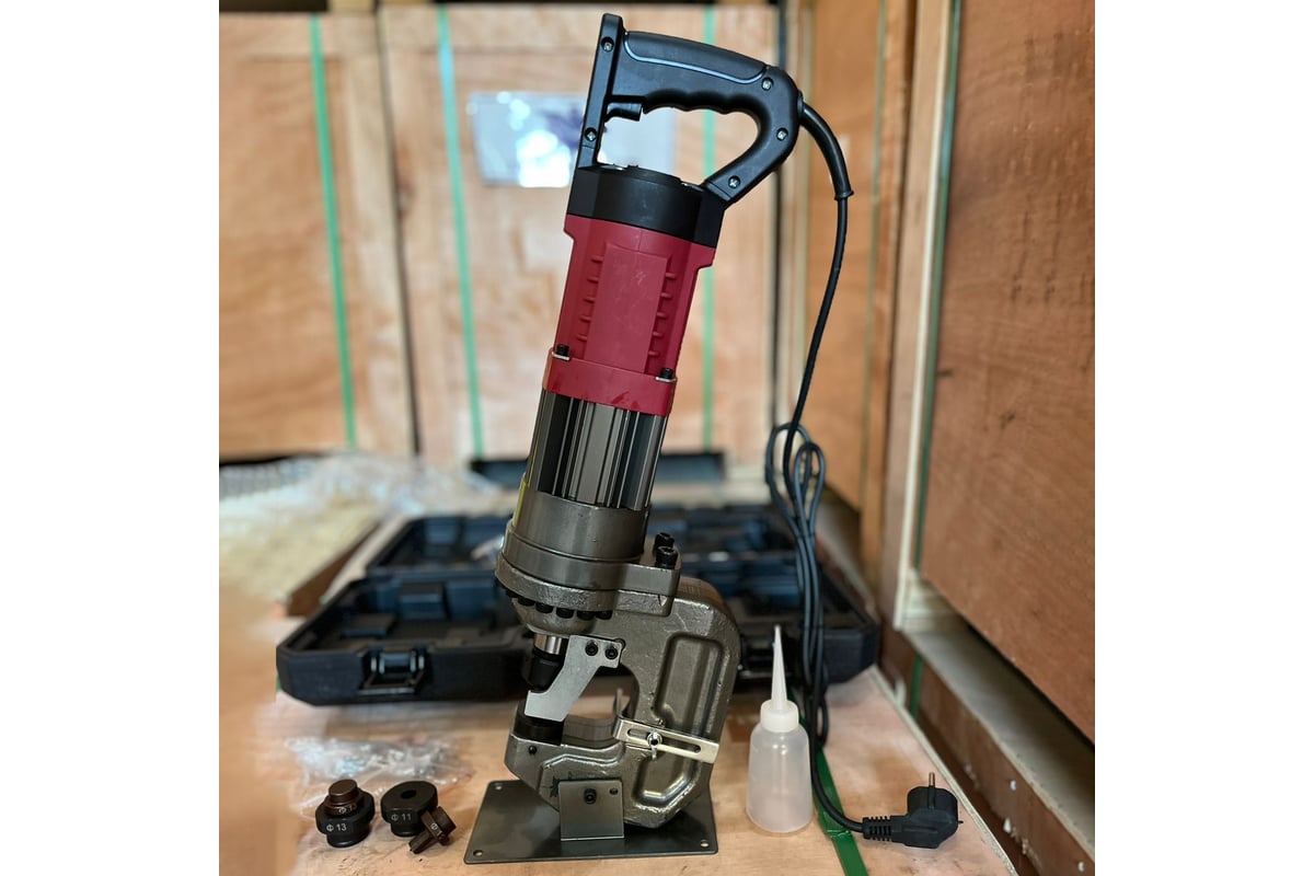 Дырокол предназначен для пробивки отверстий в стальном, железном, медном, алюминиевом материале с помощью сменных матриц. Имеет небольшой размер и вес, прост в эксплуатации, экономит труд и быстро выполняет свою задачу.