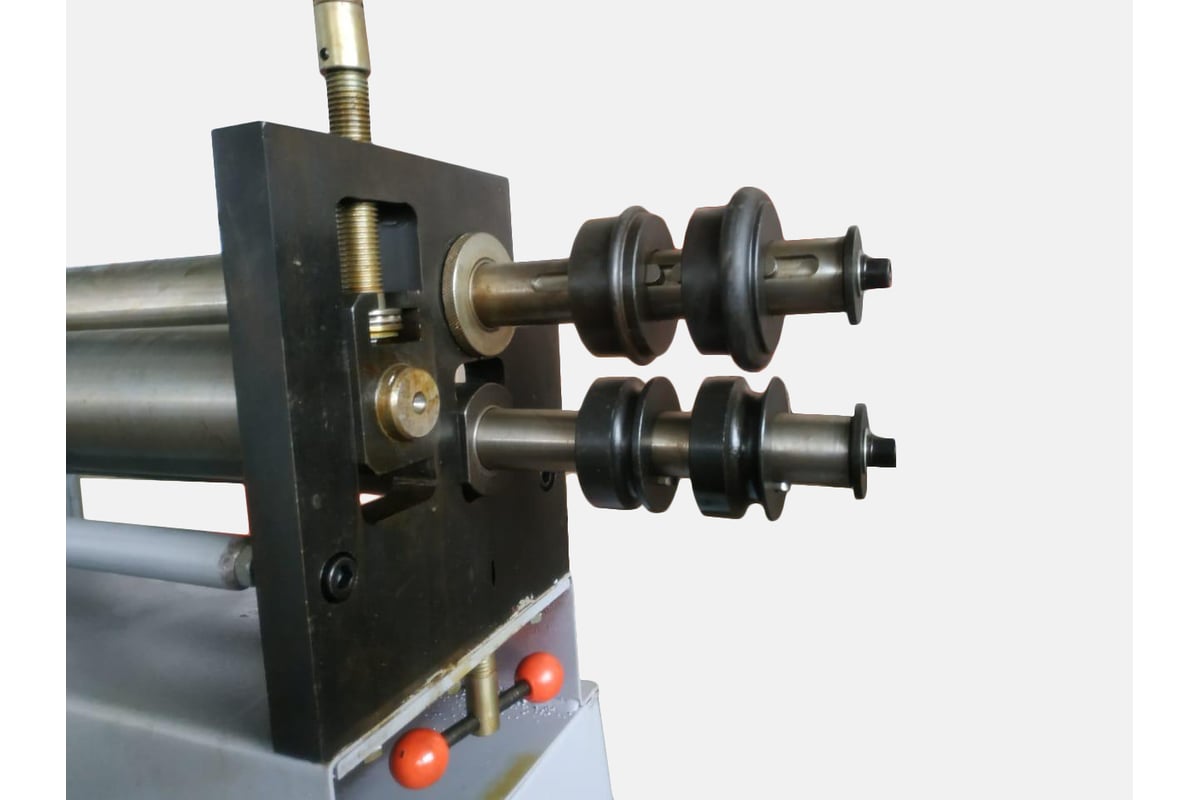 Вальцы оборудованы съемным валом, и удобными регулировками положения верхнего и нижних валов, что позволяет быстро перенастроить станок при изменении толщины заготовки, а так же увеличивает производительность станка. Модуль для зиговки труб позволяет наносить отбортовочный зиг.