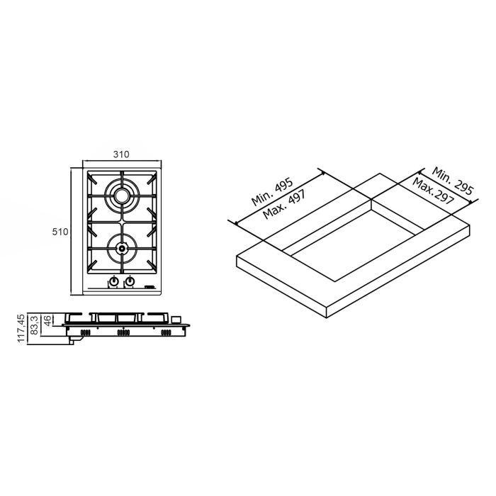 • Розміри ніші для вбудовування 6 х 29.5 х 49.5 см