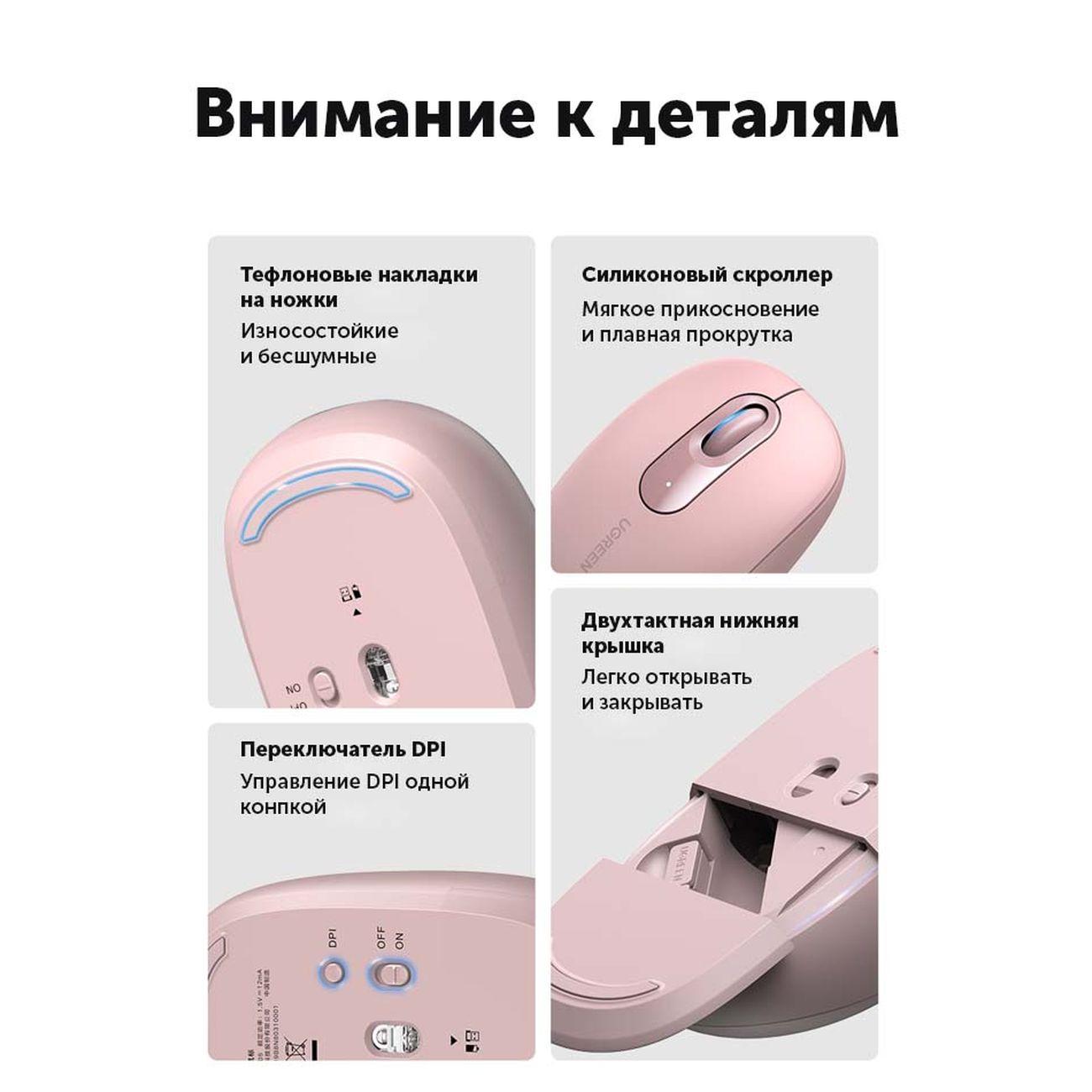 Мышь Ugreen MU105 (90686) 2.4G Portable Wireless Mouse Cherry Pink