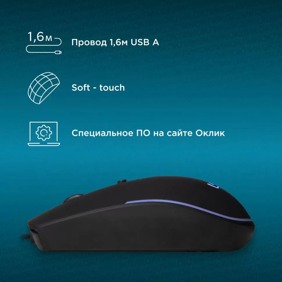 Мышь OKLICK 100M (1909417) черный оптическая (1600dpi) USB (4but)