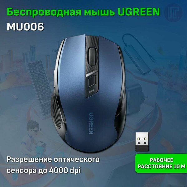 Мышь UGREEN MU006 (25753) Ergonomic Wireless Mouse Blue