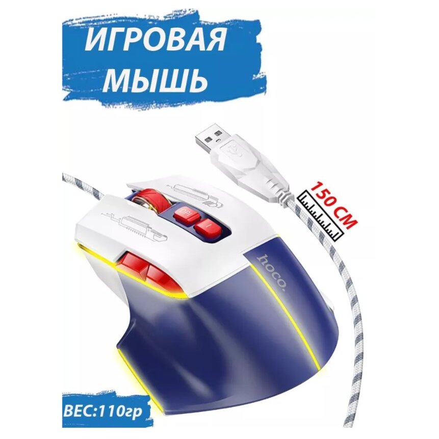 Мышь HOCO GM31 Overlord luminous gaming wired mouse бело-голубой