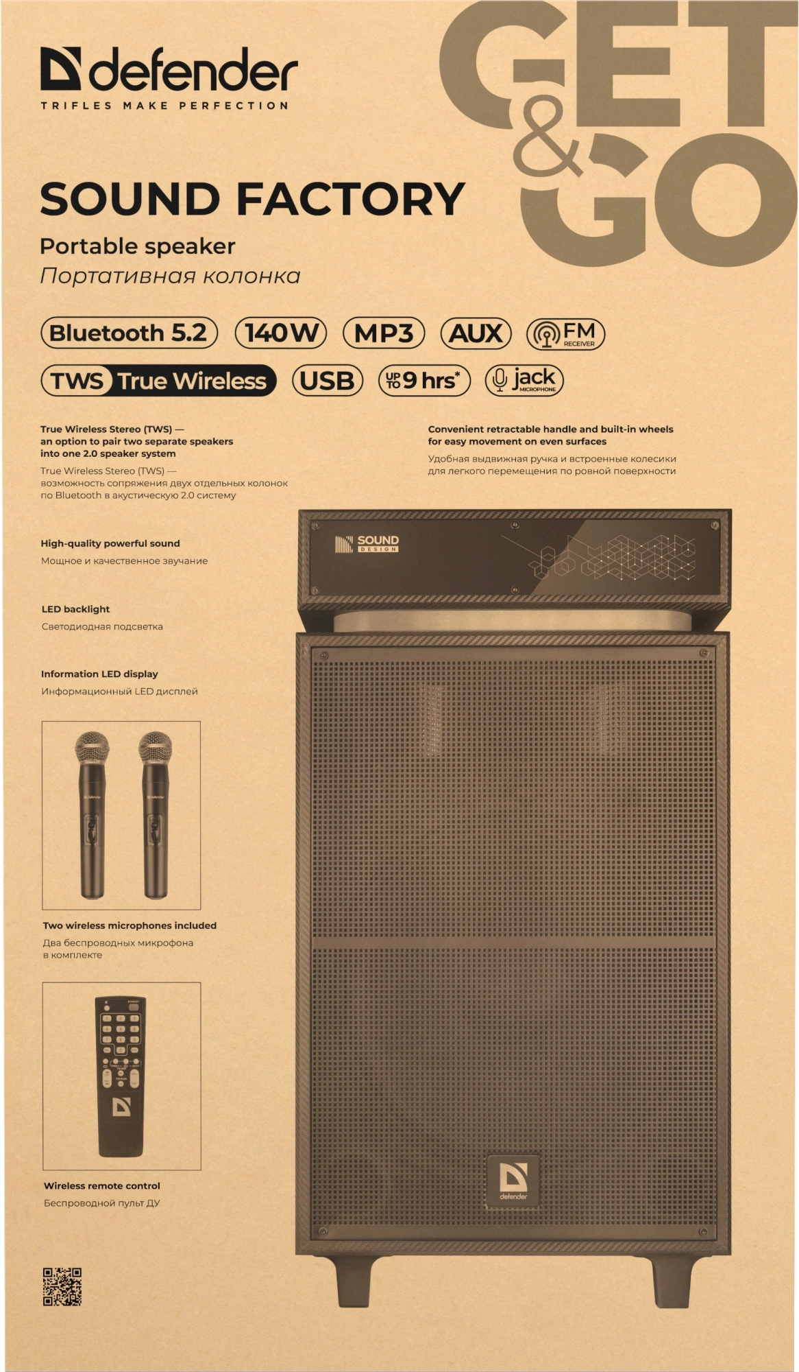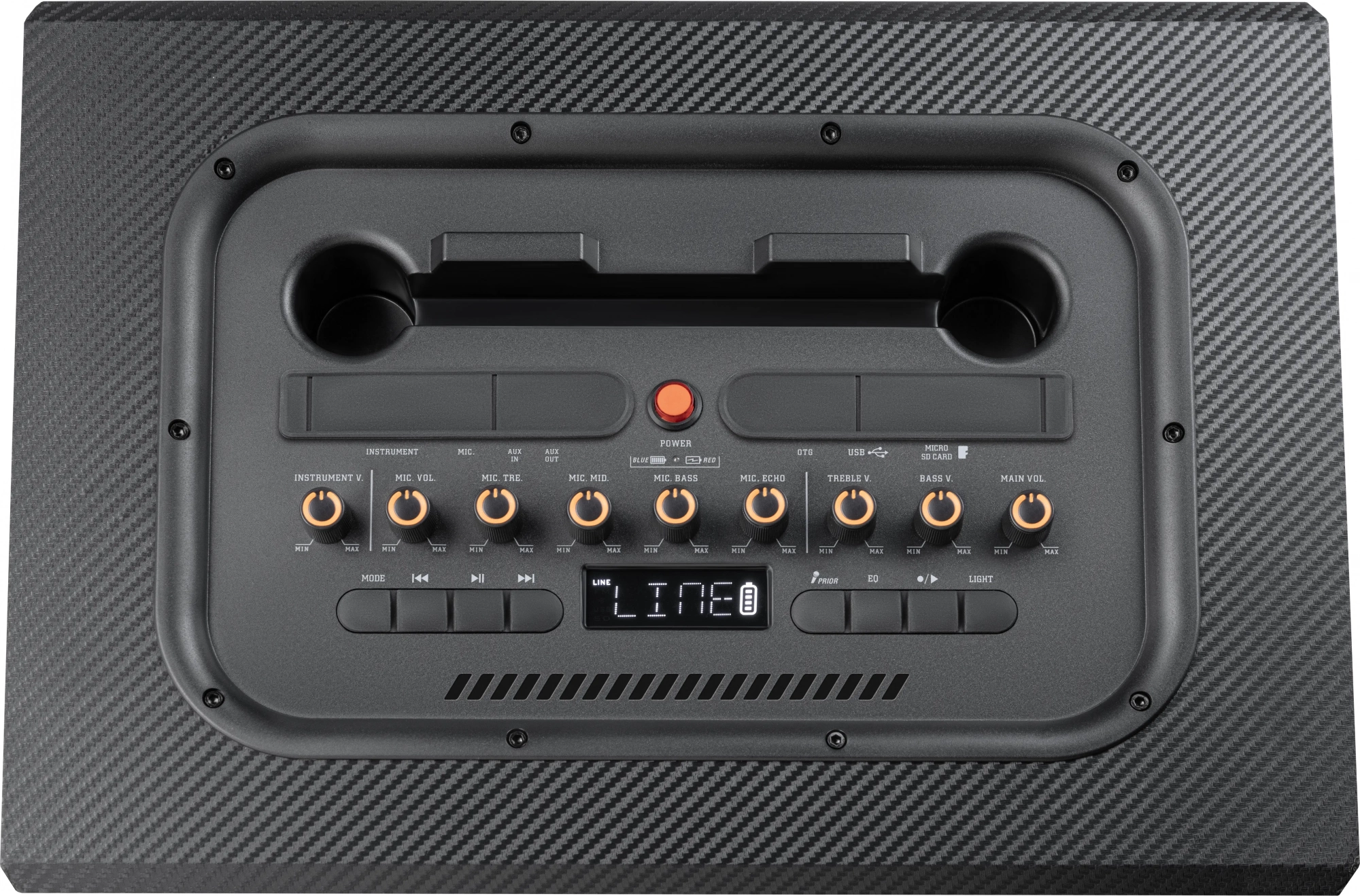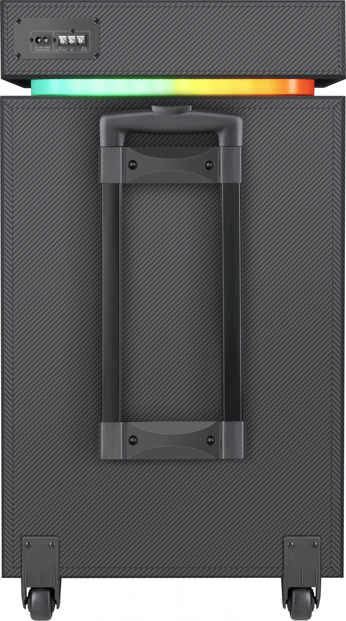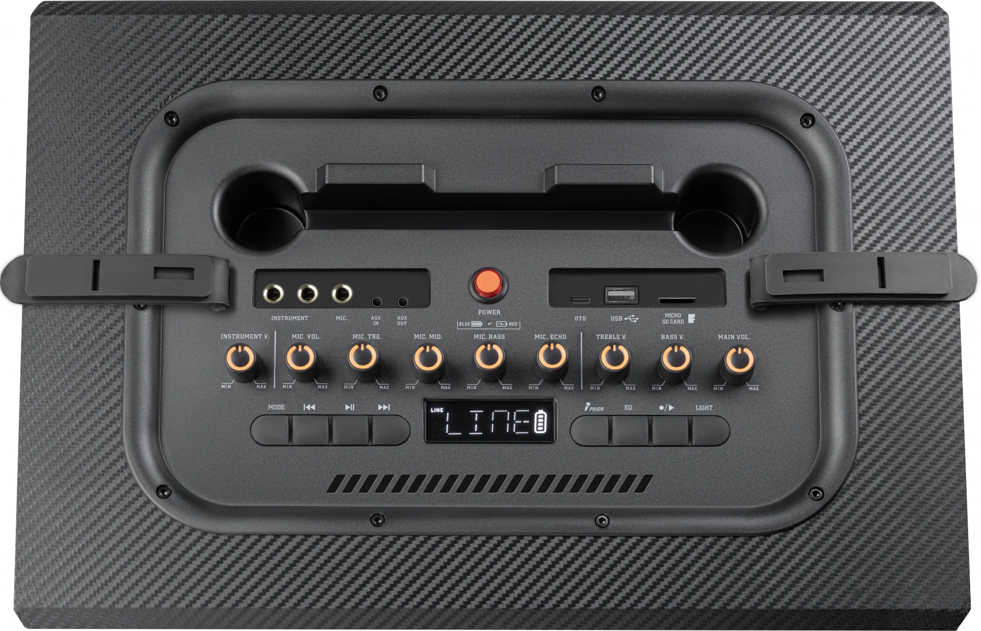 ОсобенностиФункция PowerBank. Выдвижная ручка и колесики для легкого перемещения по ровной поверхности. Два беспроводных микрофона. Разъем для микрофона. Функция записи, позволяет записывать речь и фоновый звук. Поддерживает технологию OTG. Эквалайзер. Встроенная подставка под телефон и двух микрофонов